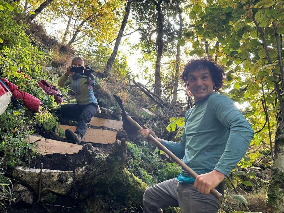 machten wir uns ans Werk:• Dachstein: Der Weg ist noch jung und weich – Ziel war es, den Zugang zum Sektor klar und sicher zu gestalten, damit alle Neugierigen ihn ohne Umwege finden.• Schaufelsen: Die Felsräumarbeiten im letzten Jahr hatten einige Wege beschädigt – diese wurden nun wieder instand gesetzt.• Aussichtsfelsen: Der östliche Abstieg wurde mit neuen Stufen versehen und damit deutlich sicherer gemacht.