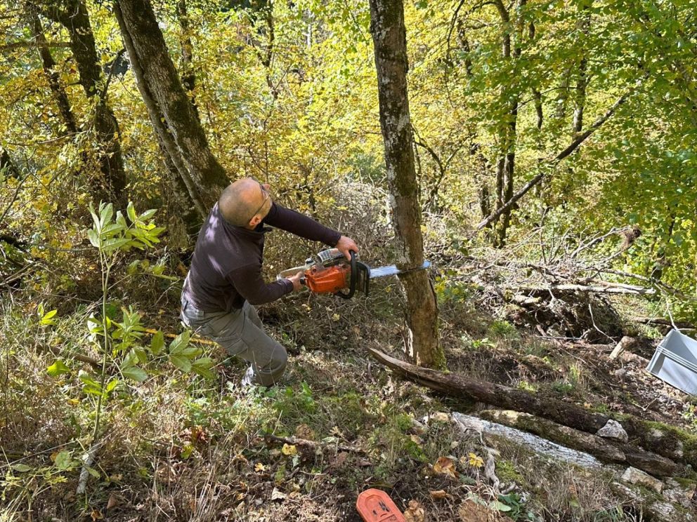 Im Fokus standen unter anderem die Allgemeinverfügung zur Schutzzeit des Uhus, eine mögliche Freigabe weiterer Kletterfelsen, die Erschließung neuer Touren sowie die Sanierung bestehender Routen.Wir als IG haben uns außerdem dazu entschlossen, am sogenannten „Uhuverhör“ 2026 mitzuwirken – denn der Naturschutz und die im Däle beheimateten Tiere liegen uns ebenso am Herzen wie das Klettern selbst. Auch das Sperren einzelner Routen, wenn beispielsweise ein Vogel (unabhängig von der Art) in einem großen Griff brütet, gehört für uns zum verantwortungsvollen Umgang mit der Natur – selbst wenn keine rechtliche Verpflichtung dazu besteht.Mit dem Erscheinen des neuen Kletterführers, der voraussichtlich im Frühjahr 2026 veröffentlicht wird, dürfen sich alle freuen, die gerne Neues ausprobieren. Seit der letzten Auflage hat sich einiges getan: Neue Sektoren, Touren und Varianten sind hinzugekommen. Und mit dem Kauf des Führers unterstützt ihr direkt die Finanzierung unseres Hakenmaterials – danke dafür!Mit all diesen Neuigkeiten im Gepäck gingen wir am Freitagabend zufrieden nach Hause, um am folgenden Tag pünktlich den diesjährigen Wegebau durchzuführen.Drei Trupps wurden auf den neuen Sektor am Dachstein, den Schaufelsen und den Aussichtsfelsen verteilt.Bewaffnet mit Holzstufen